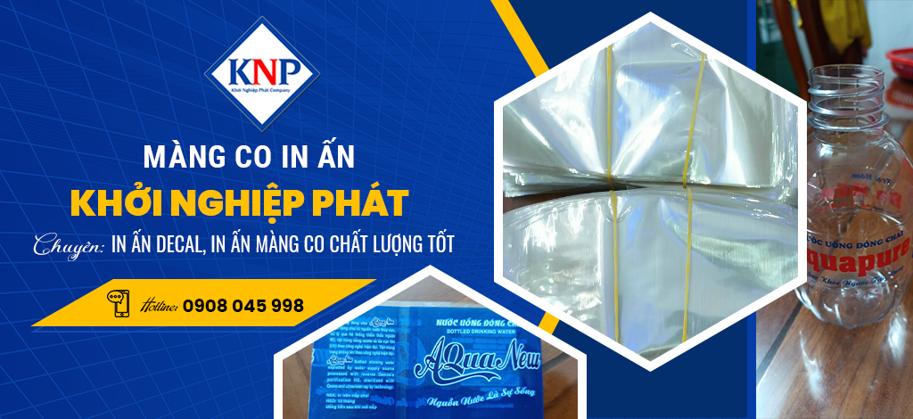 Công ty in màng co KHỞI NGHIỆP PHÁT. Chuyên thiết kế và in ấn nhãn nước các loại: Màng co nắp bình 20 lít, Nhãn Decal bình 20L, Nhãn thân chai 500ml, Nhãn thân chai 330ml, Nhãn thân chai 1500ml,
